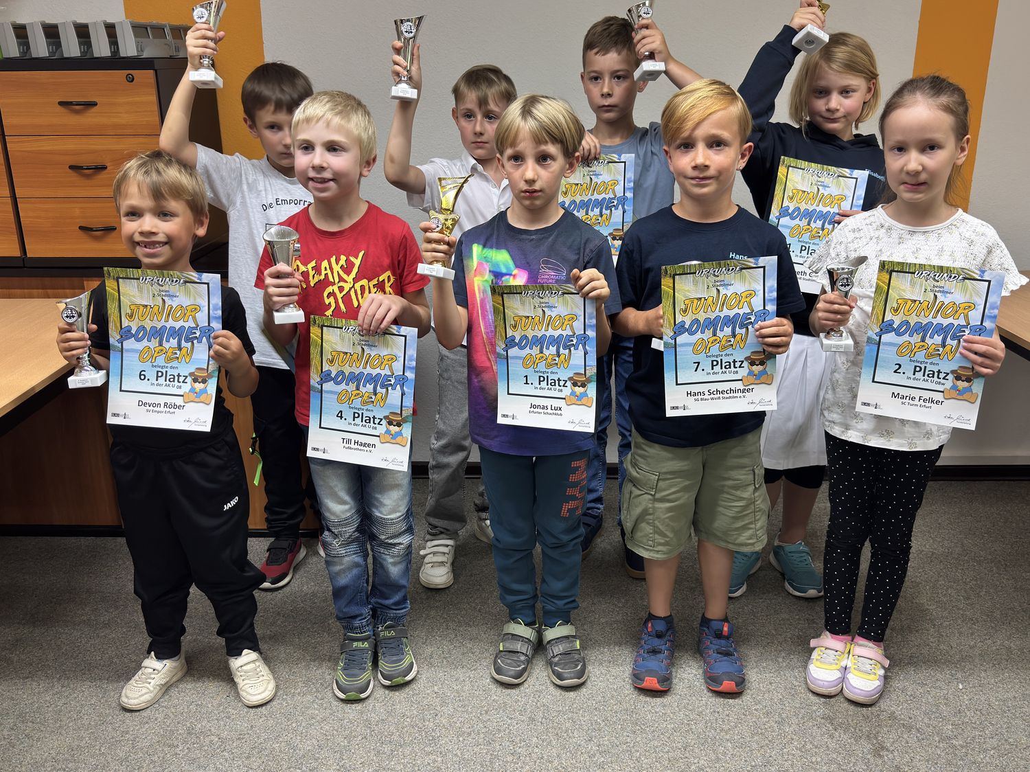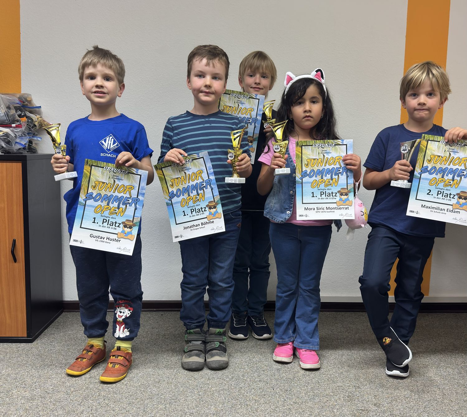 Am heutigen Samstag waren unglaubliche 65 Kinder aus ganz Thüringen in unseren Vereinsräumen zu Gast, um nach den Ferien das erste große Schachturnier zu spielen. Gespielt wurde jeweils in 5 Runden Schweizer System.