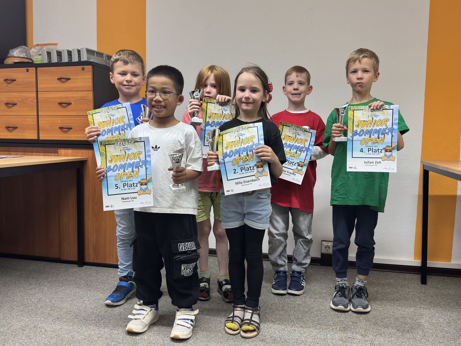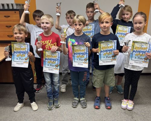 Lediglich die ganz kleinen, der jüngste Teilnehmer war 5 ½ Jahre alt, spielten zusammen in einer Altersklasse, welche zur Siegerehrung dann aber einzeln ausgewertet und geehrt wurde. Ab der Altersklasse U08 gab es dann keine Durchmischung.